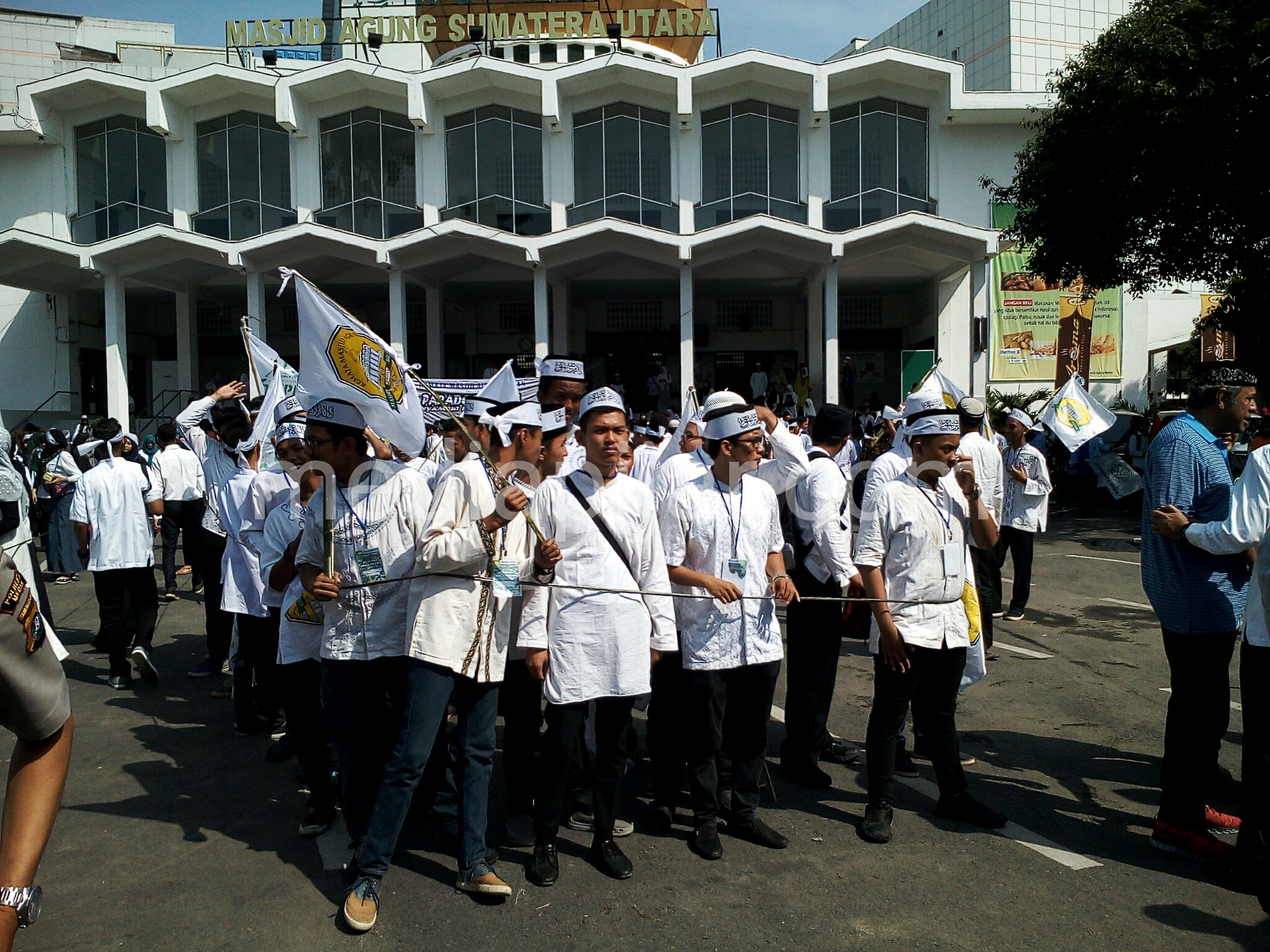 “Semoga remaja-remaja Islam di Kota Medan ini bersatu, jangan ada perbedaan bendera, komunitas, dan almamater. Jangan pernah ada perpecahan di antara pemuda-pemudi Islam ini,” ujar Irwansyah Putra Lubis selaku Ketua Remaja Mesjid Agung Medan.