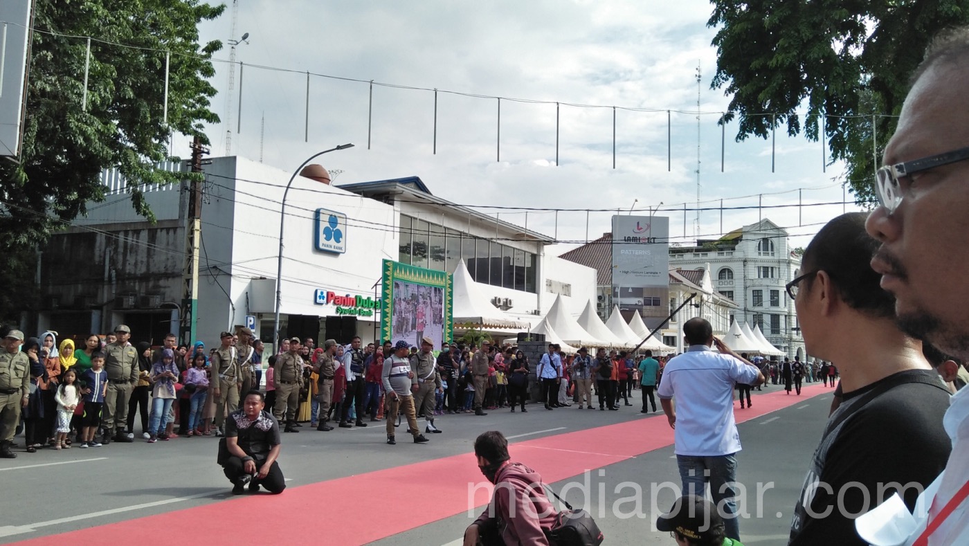 Antusiasme masyarakat menyaksikan pawai yang merupakan bagian dari rangkaian acara hari lahir kota Medan di Lapangan. (01/07) (Fotografer: Nadya Divariz Bhayitta Syam)