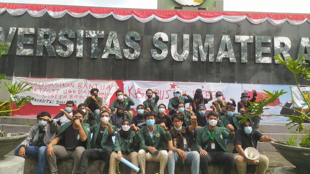 Aksi dimulai dengan berkumpulnya massa di Sekretariat PEMA USU untuk kemudian menuju ke Gedung Biro Rektor USU. Sesampainya di sana, massa aksi menyuarakan tuntutan terkait realisasi seluruh keringanan UKT yang telah diatur dalam Permendikbud No. 25 Tahun 2020 berupa cicilan SPP/UKT, penundaaan, penurunan, beasiswa, serta bantuan kuota atau pulsa.
