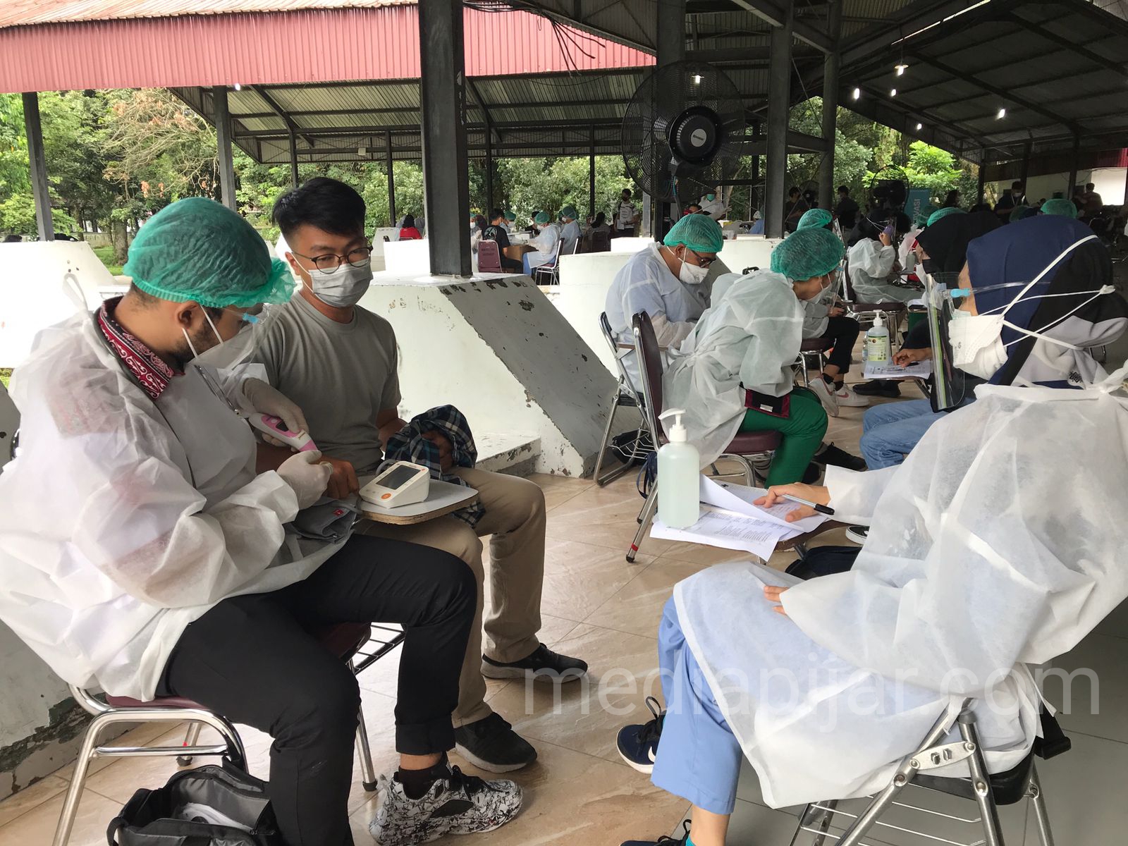 Pijar, Medan. Universitas Sumatera Utara bekerja sama dengan Salim Group melaksanakan vaksinasi massal untuk mahasiswa semester 5 ke atas di Gedung Pancasila, Senin (27/9/21). Sentra Vaksinasi USU ini akan berlangsung hingga 7 Oktober 2021 mendatang.