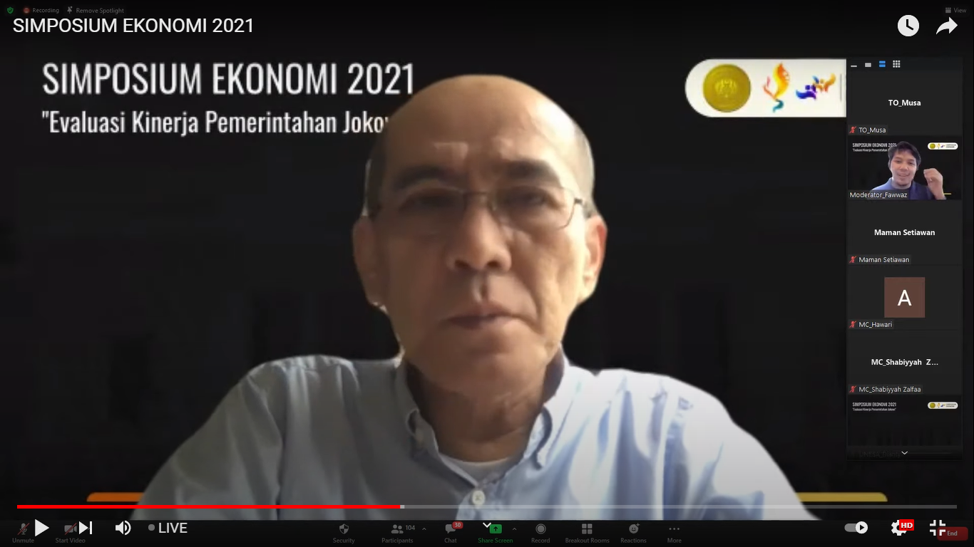 Pijar, Medan. Badan Eksekutif Mahasiswa Keluarga Mahasiswa Fakultas Ekonomi dan Bisnis Universitas Padjajaran (BEM Kema FEB Unpad) menggelar ruang diskusi Simposium Ekonomi antara mahasiswa dan masyarakat. Dengan mengangkat topik “Evaluasi Kinerja Pemerintahan Jokowi”, acara ini diselenggarakan melalui Zoom, Minggu (28/11/21).